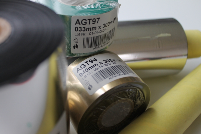 Široka paleta ribona u raznim bojama i veličinama, u zavisnosti od zelje kupca, i samog materijala na kome se štampa. Da li su to nalepnice u rolni, etikete bez lepka, ( papirne, plastične, tekstilne...), kao i u zavisnosti od otpornosti raznih uticaja ( vremenski uslovi, trenje, grebanje, smrznuti proizvodi, visoka temperatura, hemikalije, pranje.... ). Poliesterska folija, nosi pigmentsku foliju, koja ostavlja otisak na mediju uz pomoć termal transfer štampača, tačnije preko glave štampača koristeći pritisak, i elektornski zadatu temperaturu. Riboni koje proizvodi naša kompanija, imaju zaštitni sloj poliestera, koji sprečava brzo habanje termo transfer štampača, odnosno glave.